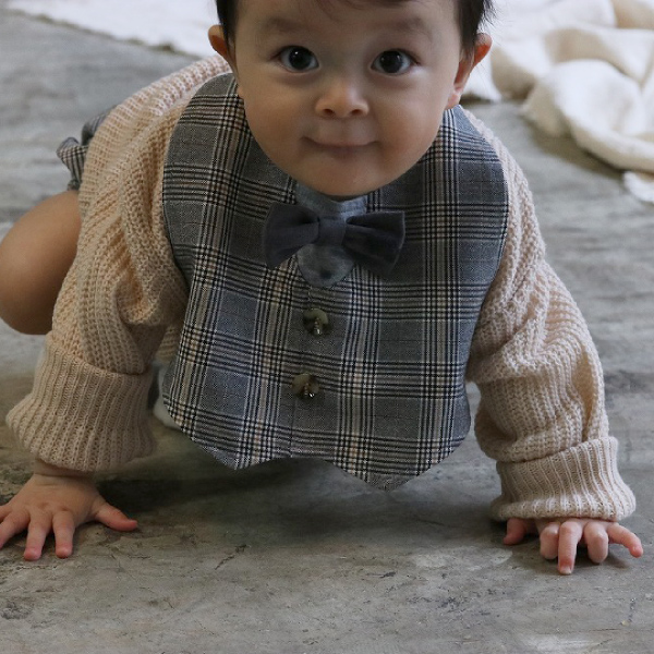 スタイはスナップボタンで着脱もかんたん!パンツはたっぷりゆとりのあるかぼちゃパンツ。ウエスト、裾はやわらかいゴム入り。腰回りのゆとりも多く、1歳くらいまでは十分着用いただけるので、ハーフバースディや出産祝いなどのプレゼントにもおすすめです。結婚式やパーティ・フォーマルな場にも♪