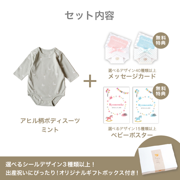 【mocmof モクモフ】アヒル柄ボディスーツ(ミント)