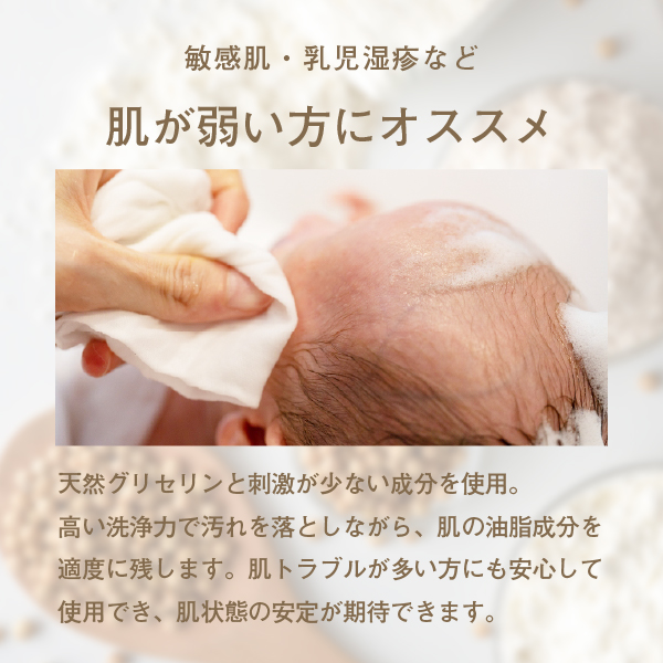 赤ちゃん敏感肌・乾燥肌・繊細肌・年齢肌などで肌の弱い方、体臭が気になる方にオススメ。