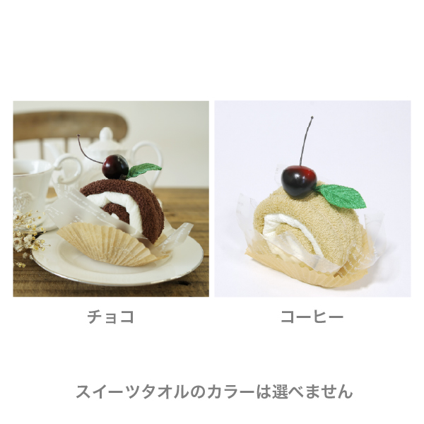 スイーツタオルは、見た目がスイーツのようなユニークなデザインで、開ける楽しみも◎。コーヒー味とチョコ味風のどちらかが届きます♪
