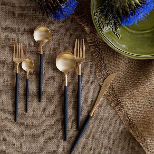 【送料無料】【最短翌日出荷】クチポール GOAブラック めおとカトラリーセット ゴールド