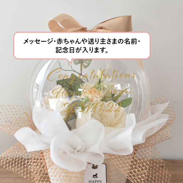 バルーンブーケ メッセージ付きバスケットバルーン アイボリー