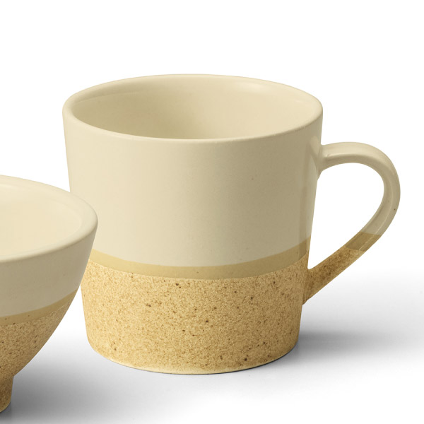 手に取った瞬間、ざらりと心地よい質感。本物のコルクを思わせる温かみのある風合い。淡くやさしい色合いのセミマットの釉薬がサラリと包み込み、静かな上品さを添えます。異なる質感が一つに溶け合い、見て、触れて、毎日の何気ないひとときを豊かにしてくれます。 -