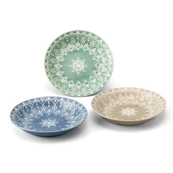 夜空に広がる星々が織りなす星空のように、繊細な幾何学模様を描いたテーブルウェア。東洋のエキゾチックさに西洋のエッセンスを融合したことで盛り付けるお料理を選ばず、日本の食卓に取り入れやすいようにデザインしました。 -