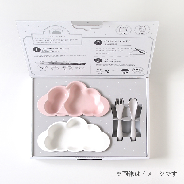 可愛く楽しくなる雲の形プレートは2枚セットで仕切ありと、なしでお料理ごとに使い分けることができます。