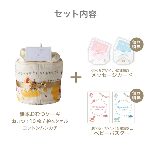 絵本タオルのベビーおむつケーキ(パティシエ)