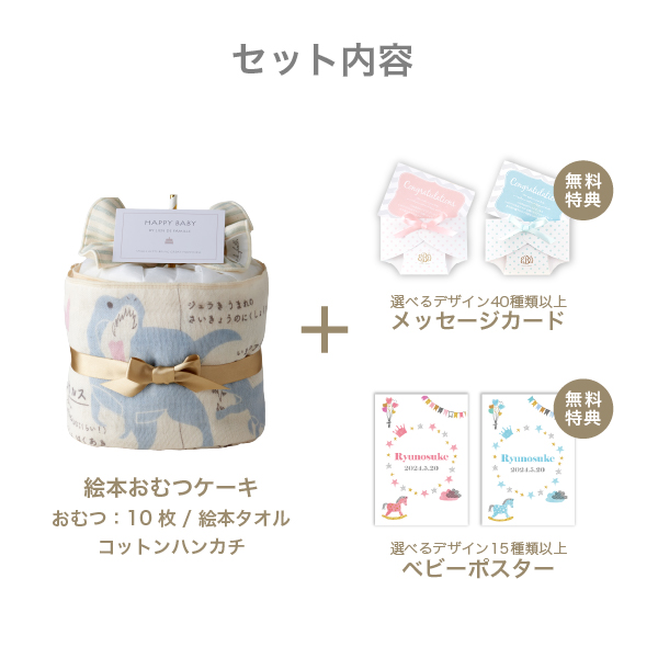 絵本タオルのベビーおむつケーキ(ザウルス)