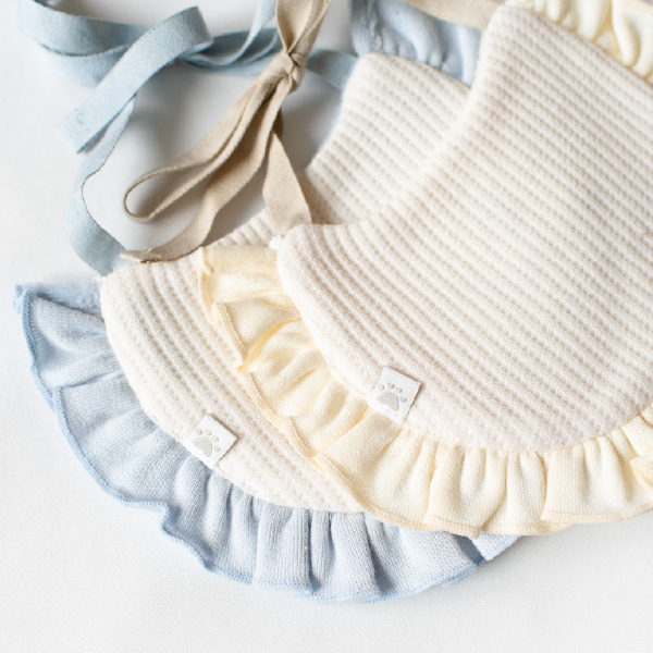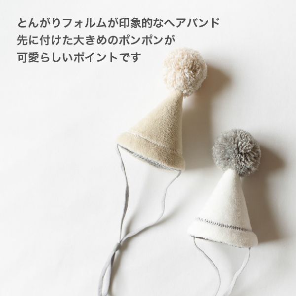 ナチュラルなベージュカラーに、フリルと刺繍が映える上品かわいいバースデーセット。スタイととんがり帽子の組み合わせで、着けるだけで一気に誕生日感がアップします。