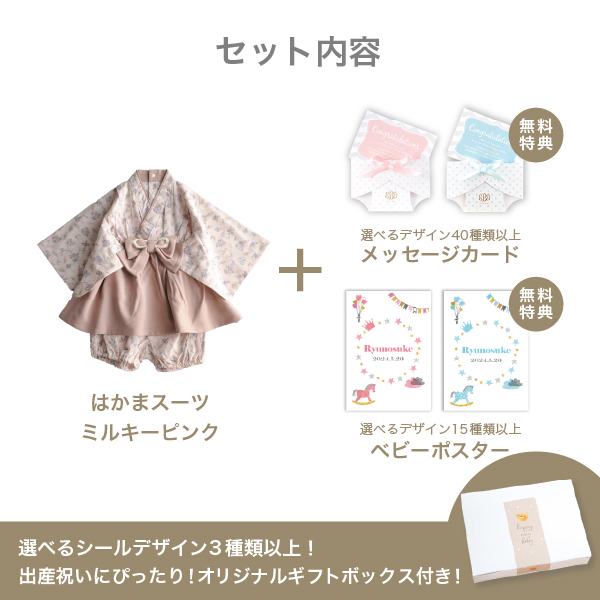 ふんわりやさしいミルキーピンクカラーが可愛らしい、赤ちゃんのための袴ロンパース。やわらかな素材感で着心地もよく、かしこまりすぎないナチュラルな和スタイルが魅力です。