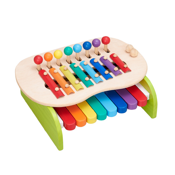 天板の上に鉄琴が出ているので、それをバチで叩いて遊ぶこともできます。