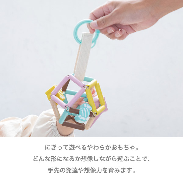 どんな形になるか想像しながら遊ぶことで、手先の発達や想像力を育みます。