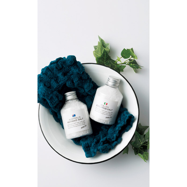 イタリアとオーストラリアの大自然から作られた天日塩。海外の大自然の恵みをバスソルトにしてボトルに詰め込みました。毎日のバスタイムを旅行気分にさせてくれるバスアイテムです。