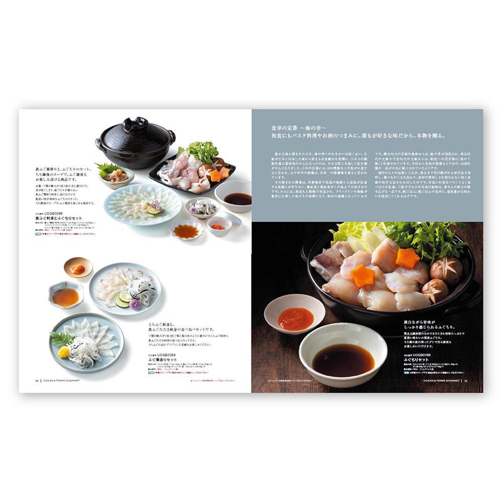 海と大地が育んだカタログギフト。生産者の表情や風景が不思議と見えてくる自然の魅力がたくさん詰まった1冊です。色鮮やかなページに癒されながら商品をお選びいただけます。「美味しい」にこだわりを持ったあの人へ。