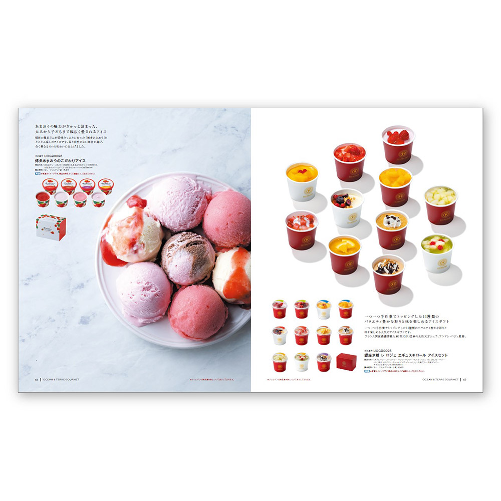 また、カタログ本の綺麗さも魅力。色をふんだんに使って産地直送のみずみずしさや新鮮な香りを切り取ったカットは見ているだけで気分が高まり、清々しい空気がただよいます。ちょっとぜいたくな商品を贈りたい、贈った相手に幸せな気持ちになってほしい、そんな思いでお贈りしたい方に絶対おすすめの1冊です。