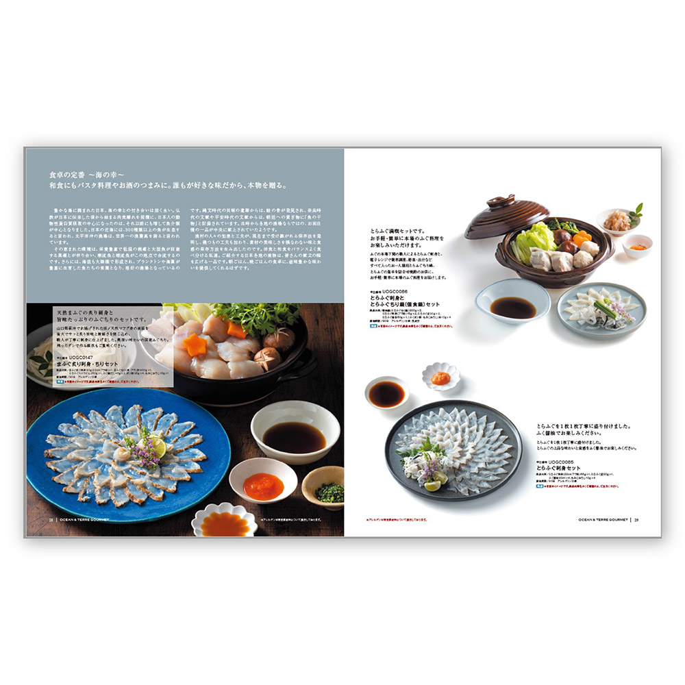 海と大地が育んだカタログギフト。生産者の表情や風景が不思議と見えてくる自然の魅力がたくさん詰まった1冊です。色鮮やかなページに癒されながら商品をお選びいただけます。「美味しい」にこだわりを持ったあの人へ。