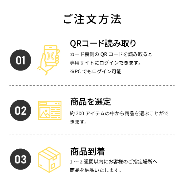 専用のギフトカードを贈るだけで、Web上でスムーズに商品を選んでいただけます。注意事項