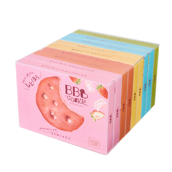 内容 BBBクッキー(チョコバナナ・とにかくイチゴ・クランベリーチョコ・ブルーベリーナッツ×各2枚、宇治抹茶ホワイトチョコ×1枚) 箱サイズ 幅101×奥行141×高さ169mm 賞味期限 常温45日 アレルギー 卵、乳、小麦 お届けについて