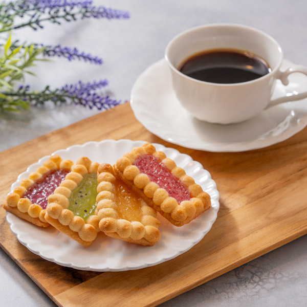 彩り鮮やかな4種のフルーツジャムをのせ、しっとりホロッとほどける食感に焼き上げた「銀座ジェムクッキー」を詰合せました。