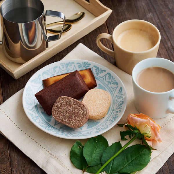 内容 自家挽きアーモンドのフィナンシェ(プレーン・ショコラ)×各1個、自家挽きアーモンドのダックワーズ(プラリネ・ショコラ)×各1個、インスタントスティック(泡立ちカフェラテ・ロイヤルミルクティー)×各1本 サイズ 幅190×奥行60×高さ170mm 賞味期限 常温150日 アレルギー 卵・乳・小麦 -