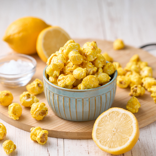 広島産レモン皮パウダーを使用した、酸味を少し効かせた程よい甘さのポップコーンです。塩味が甘さを引き立てます。