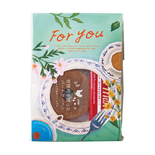気持ちを伝えるメッセージに深川カントリーファームの有精卵を使ったバームクーヘンとドトールコーヒーのインスタントスティックを添えた、メッセージ&カフェタイムのプチギフトです。