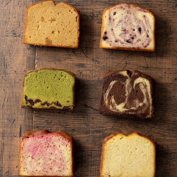 フルーツを混ぜ込んだ大きなしっとりパウンドケーキです。ずっしりとしたサイズ感ですが、ふんわり軽い食感で意外にぺろりと食べられます。朝食代わりやデザートにも。フルーツとフレーバーが組み合わさったそれぞれの味わいをお楽しみください。