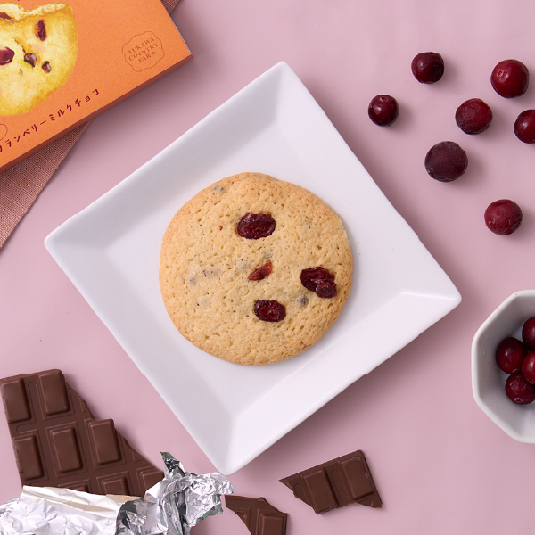 直径約8.5cm、しっとりほろほろ食感の大判クッキー。プレーン生地にベリーとミルクチョコが甘酸っぱい1枚。いつもより心をちょっとだけ明るく華やかにしたい日にピッタリです。