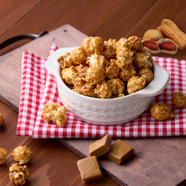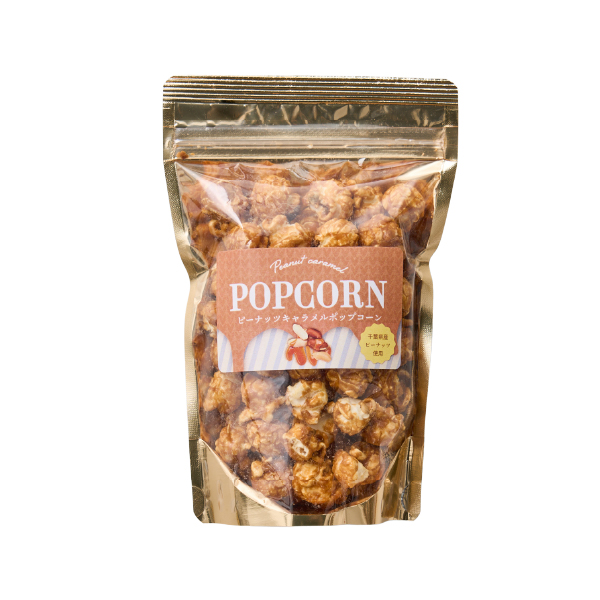 千葉県産落花生を使用したキャラメルポップコーン。ピーナッツの風味がありつつ、濃厚なキャラメルポップコーンの味わいを堪能できます。