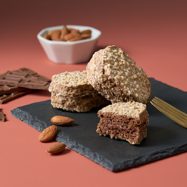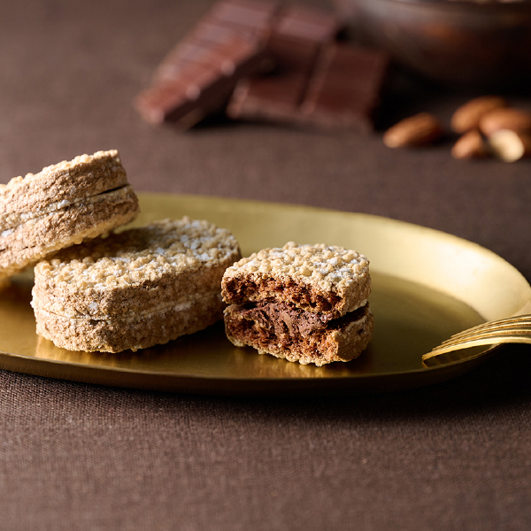 アーモンドパウダーの生地にさらにアーモンドダイスを入れることで、さっくりとした食感とともに、濃厚な味わいのショコラクリームを楽しめるダックワーズです。