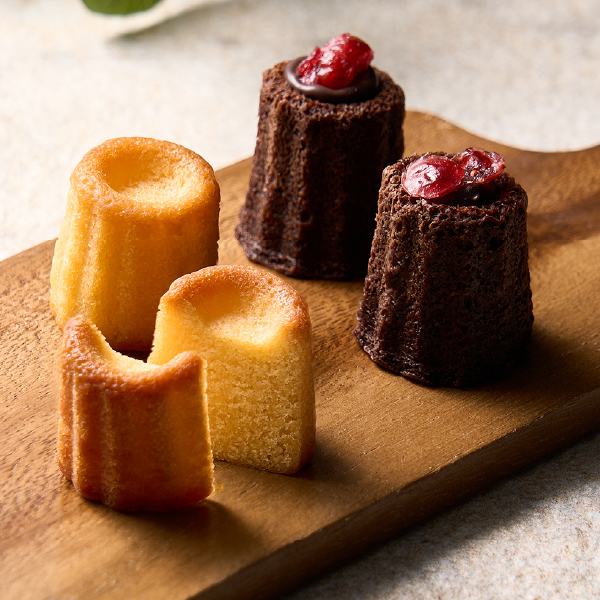 ラム酒がほのかに香るプレーン、ショコラクランベリー。素材と焼きにこだわった、贈り物にふさわしいフィナンシェです。