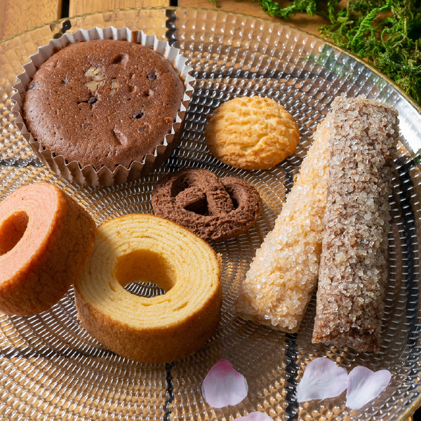 内容 しっとりバームクーヘン・しっとりバームクーヘン苺・有精卵たっぷりマドレーヌ(ショコラ)×各1、香ばしくて素朴なクッキー(ショコラ・メープル×各1)、さくさくスティックパイ(メープル・ショコラ×各1) サイズ 幅185×奥行212×高さ70mm 賞味期限 常温45日 アレルギー 卵、乳、小麦 -