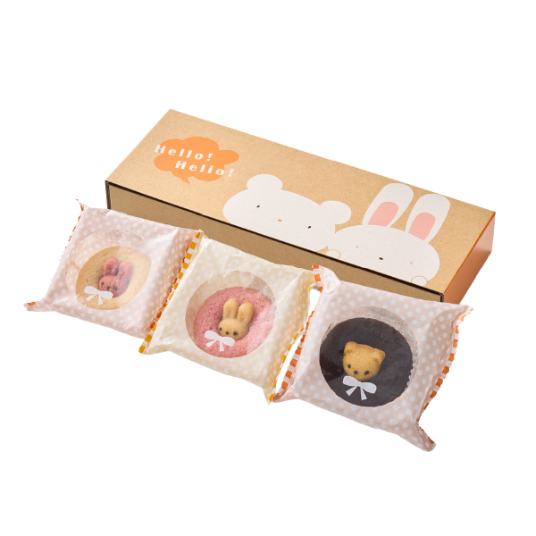 内容 うさぎイチゴ・うさぎプレーン・くまチョコ×各1個 サイズ 幅114×奥行325×高さ45mm 賞味期限 常温30日 アレルギー 卵、乳、小麦 -