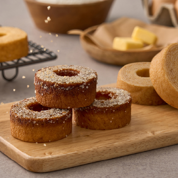 北海道で製造された発酵バター、アーモンドプードルを使用した、コクと芳醇な香りの発酵バターバームクーヘンと、大粒のざらめを焦がしたジャリジャリとした食感が楽しいブリュレバームクーヘン。異なる魅力を持つ2種類のホテルオークラのバームクーヘンを、ぜひお楽しみください。 -