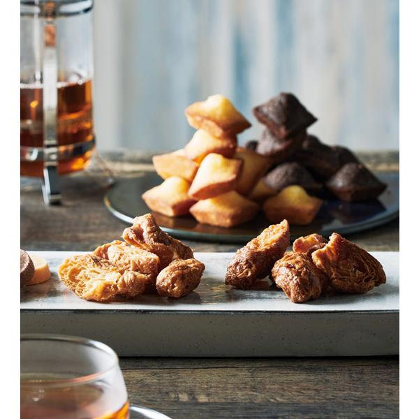 内容 クロワッサンラスク(シュガーバター風味)・プチフィナンシェ(ショコラ)(6P)・クロワッサンラスク(キャラメル)×各1、クッキー(プレーンバニラ・チョコチップ)×各3 箱サイズ 約220×245×60mm(入) パッケージ 化粧箱 重量 約340g アレルギー 卵・乳・小麦 お届けについて