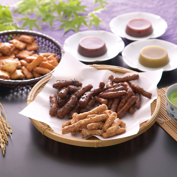 お土産でも人気の菓子処久兵衛の種類豊富な和菓子セット。昔ながらの素朴な味のかりんとう、夏でも冬でも楽しめるまろやか羊かんと国産米だけで作った3種類のあられを詰め合わせました。
