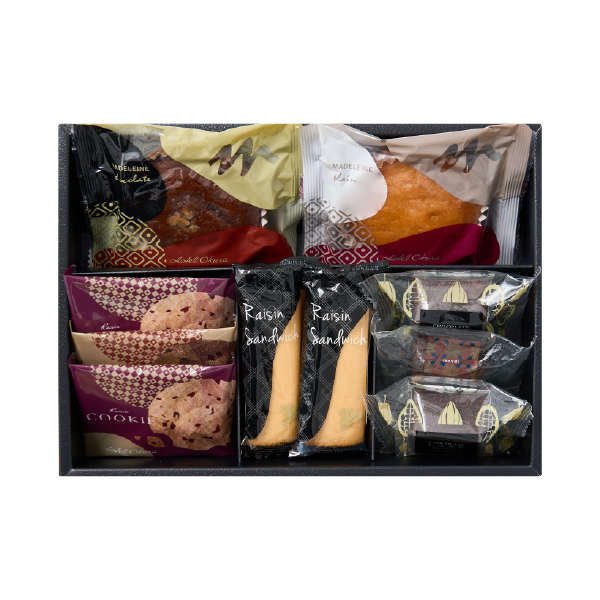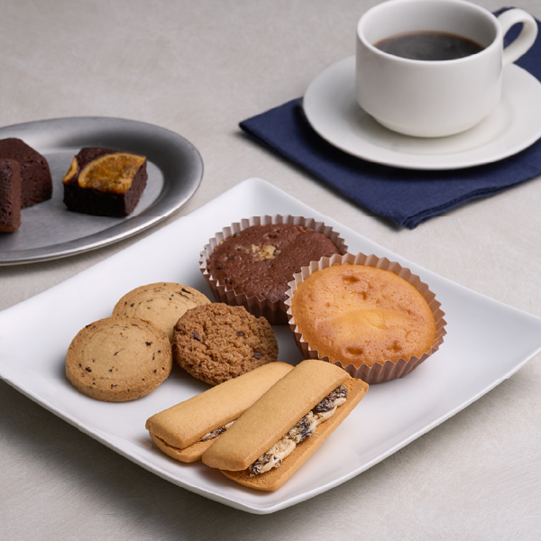 ホテルオークラの焼菓子の詰合せ。チョコレートのほろ苦さを凝縮させたブラウニー、しっとりした焼きあがりのマドレーヌなどさまざまな焼菓子を取り揃えているのにも、選ぶ、味わう楽しさを届けたいというおもてなしの心を感じて頂けるセットとなっています。 -