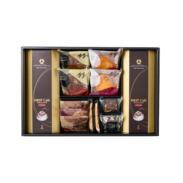 ホテルオークラの焼菓子とドリップ珈琲の詰合せ。しっとりした焼きあがりのマドレーヌやレーズンサンドなどさまざまな焼菓子を取り揃えているのにも、選ぶ、味わう楽しさを届けたいというおもてなしの心を感じて頂けるセットとなっています。焼菓子に良くあう上品な味わいのドリップ珈琲と一緒にご堪能ください。 -