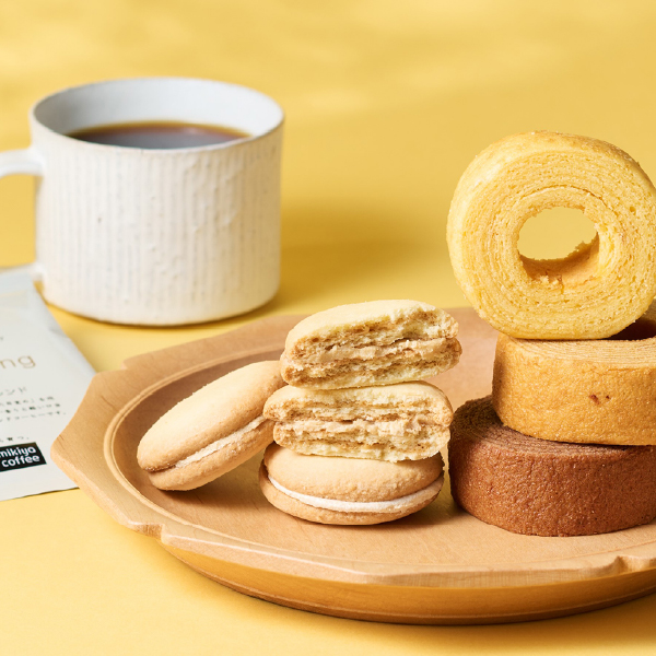 京都の老舗珈琲店である三喜屋珈琲のレギュラーコーヒーとお召し上がりいただく事で、お菓子とのマリアージュをお楽しみください。 -