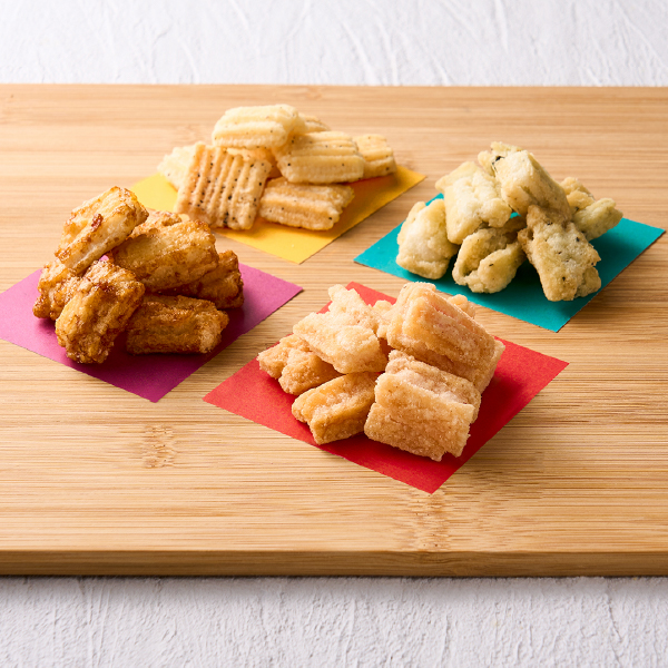 京都亀岡で保津川あられ本舗が昔ながらの製法で作る、お米の香りがする「ほんもの」のあられ。きめが細かく、粘りのある食感が特徴の佐賀県産ヒヨクモチを使用して、健康や美容に良いとされる米油で1つ1つ丁寧に揚げ、香り豊かな4種のフレーバーに仕上げました。京の職人がこだわり続ける、「お米の香りがするあられ」をお楽しみください。 -
