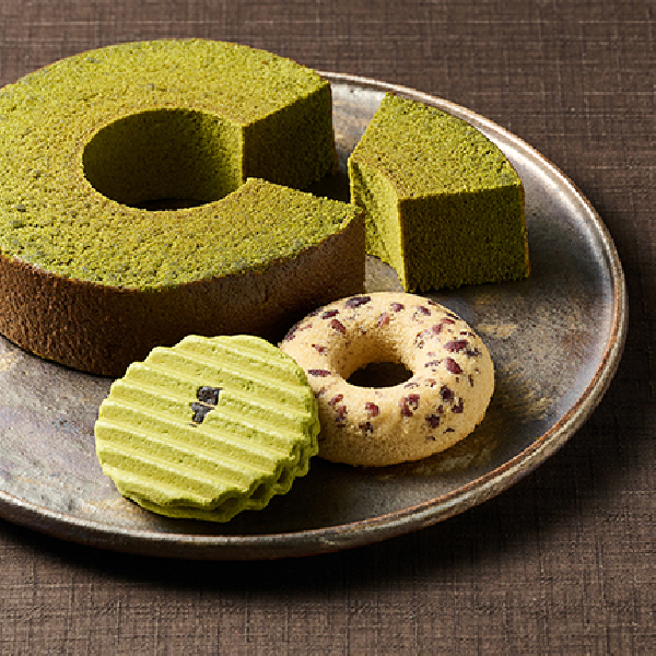 元禄年間創業の老舗「丸久小山園」の宇治抹茶を使用した上品で芳醇な香りが広がるバウムクーヘン。優しい甘さの小豆の焼きドーナツに厚みのある波型クッキーに、口どけの良いクリームをサンドしたヴァッフェルもご一緒に。 -