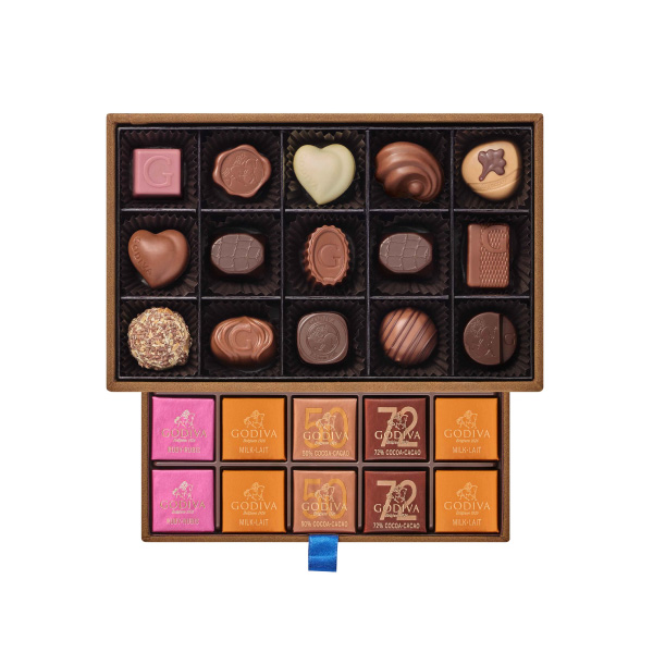 ゴディバ発祥の地ブリュッセルにある美しい広場「グランプラス」の名を冠した宝石箱のような逸品。上質なギフトボックスに、選りすぐりのチョコレートの贅沢詰め合わせセットです。