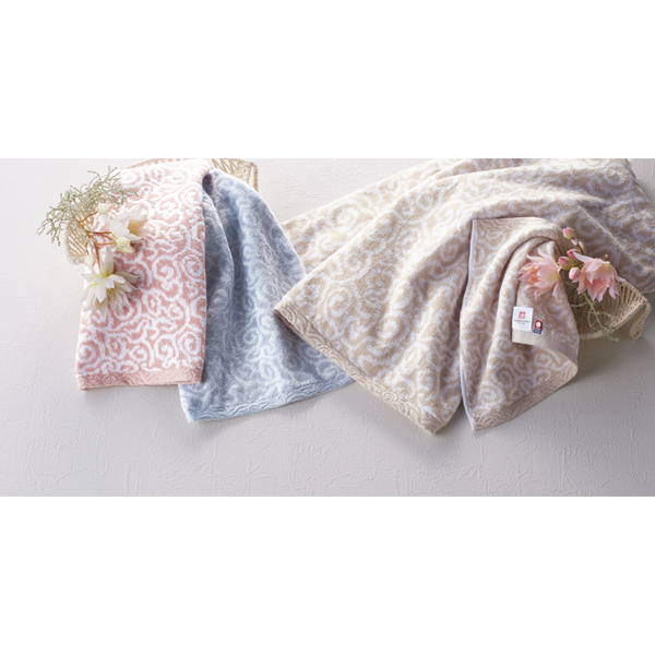 木箱入りの上品なタオルギフト「今治謹製 紋織タオル」を大切な方へ。日本の伝統的な模様である唐草模様と来島海峡の荒波を連想させる波模様からとった、手描きの不規則な曲線を美しく表現しました。厳選された2種類のパイル糸を使い、ふっくらとやわらかいタオルになっています。
