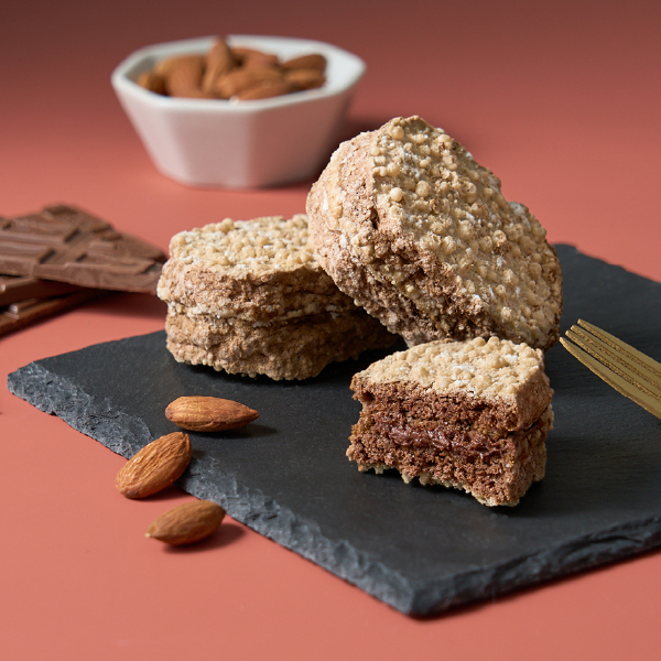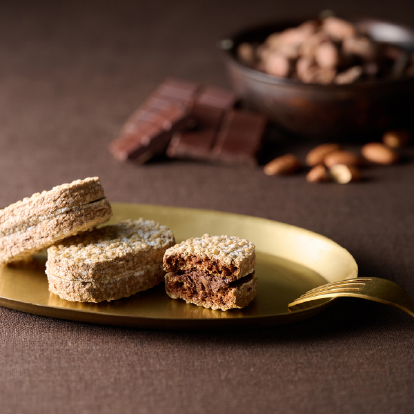 アーモンドパウダーの生地にさらにアーモンドダイスを入れることで、さっくりとした食感とともに、濃厚な味わいのショコラクリームを楽しめるダックワーズです。 -