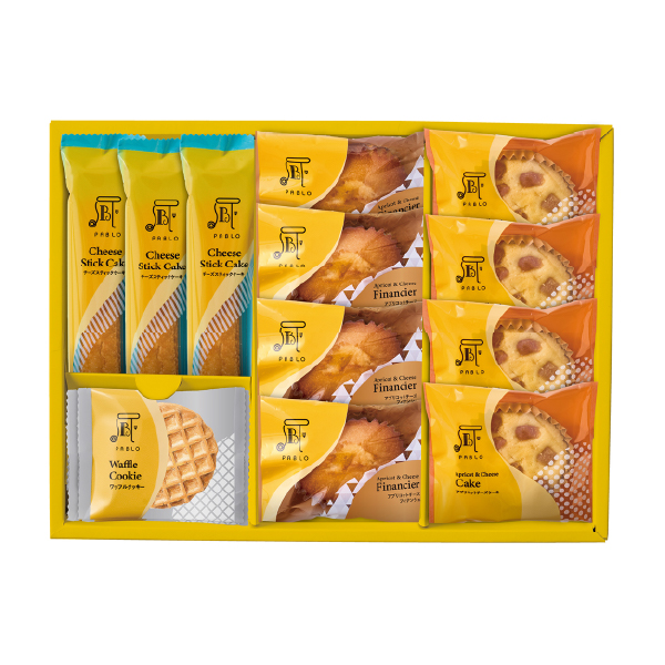 内容 アプリコットチーズフィナンシェ×4個、アプリコットチーズケーキ×4個、チーズスティックケーキ×3個、ワッフルクッキー×4個 箱サイズ 幅228×奥行305×高さ50mm 賞味期限 常温45日 アレルギー 卵、乳、小麦 お届けについて