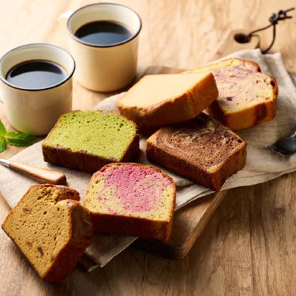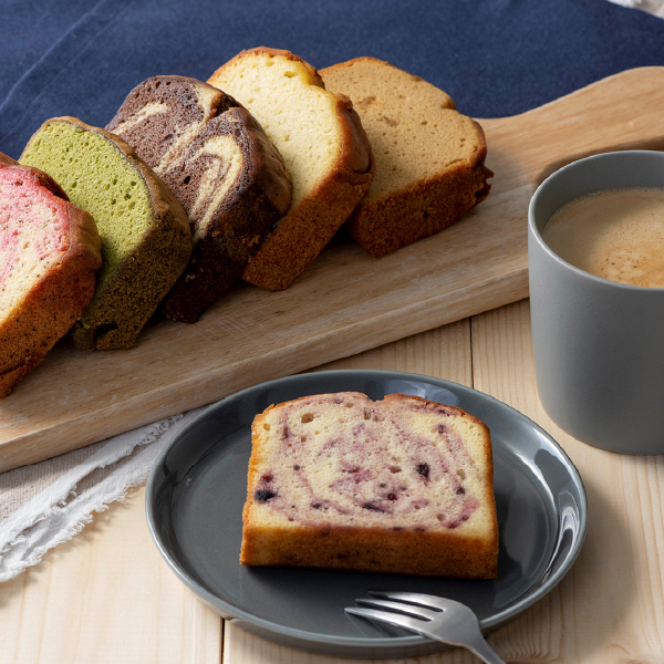 フルーツを混ぜ込んだ大きなしっとりパウンドケーキです。ずっしりとしたサイズ感ですが、ふんわり軽い食感で意外にぺろりと食べられます。朝食代わりやデザートにも。フルーツとフレーバーが組み合わさったそれぞれの味わいをお楽しみください。 -