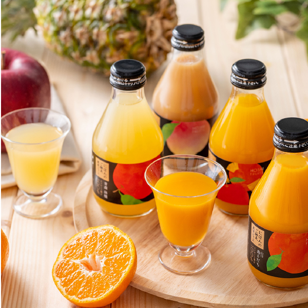 にほん全国各地で育った果物の中から厳選し、砂糖・着色料を使用せず、果物の甘みと酸味と香りを味わえるよう、何度もテイスティングを重ねて仕上げたジュースです。飲んでからだのすみずみまで気持ちよく潤える、一日の始まりにぜひお勧めしたいジュースです。 -