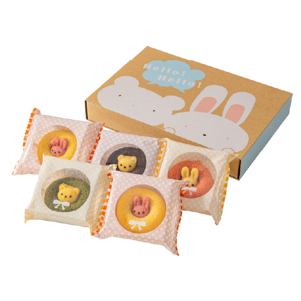 内容 うさぎイチゴ・うさぎプレーン・うさぎバナナ・くまチョコ・くま抹茶×各1個 箱サイズ 幅210×奥行302×高さ47mm 賞味期限 常温30日 アレルギー 卵、乳、小麦 お届けについて