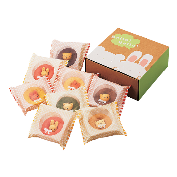 内容 うさぎイチゴ・くまチョコ×各2個、うさぎプレーン・うさぎバナナ・くま抹茶・くまキャラメル×各1個 箱サイズ 幅210×奥行207×高さ85mm 賞味期限 常温30日 アレルギー 卵、乳、小麦 お届けについて