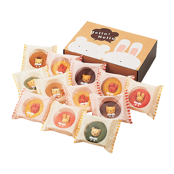 内容 うさぎイチゴ・うさぎプレーン・うさぎバナナ・くまチョコ・くま抹茶・くまキャラメル×各2個 箱サイズ 幅210×奥行302×高さ85mm 賞味期限 常温30日 アレルギー 卵、乳、小麦 お届けについて