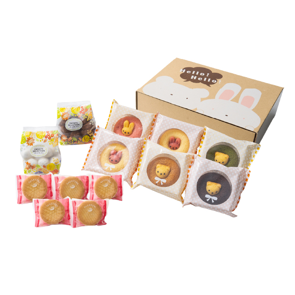 内容 りんごガレットクッキー×5個、アニマルドーナツ(うさぎプレーン・うさぎイチゴ・うさぎバナナ・くまチョコ・くま抹茶・くまキャラメル×各1個)、アーモンドボール・アーモンドココアクッキー×各1個 箱サイズ 幅210×奥行302×高さ85mm 賞味期限 常温30日 アレルギー 卵、乳、小麦 お届けについて